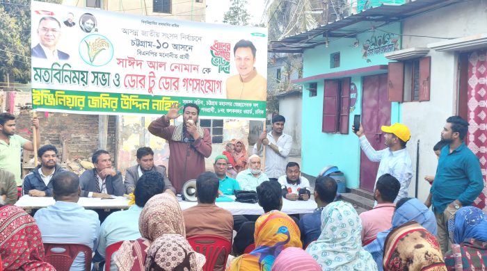 বিশেষ প্রতিনিধি:- চট্টগ্রাম -১০ আসনে বিএনপির মনোনীত প্রার্থী সাঈদ আল নোমানের সমর্থনে খুলশী কলোনিতে মহল্লা কমিটির সভাপতি এস এম রবের সভাপতিত্বে সাবেক ছাত্রনেতা জাকির হোসেন সরল সঞ্চালনায় মতবিনিময় সভা অনুষ্ঠিত